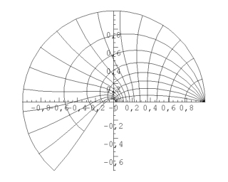 << Graphics`ComplexMap` In[2]:= pm = PolarMap[Exp, {0, 4, 1/4}, {Pi/2, Pi, Pi/16}]; In[3]:= JavaView[pm] |
